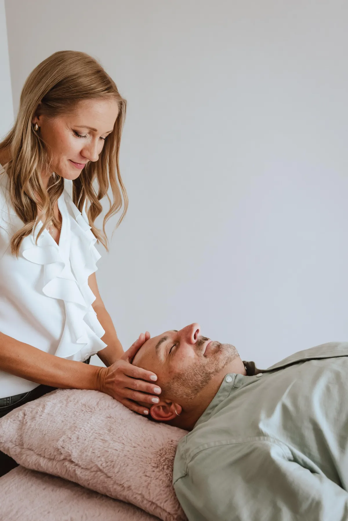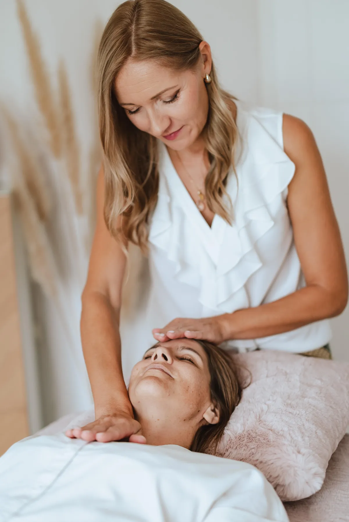 Durant la séance, je suis silencieuse, et je vais placer mes mains au-dessus de vous, puis, sur différentes parties de votre corps par un toucher léger.